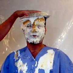 StagedStooge got a custard-filled balloon busted over his head by michiganpie1